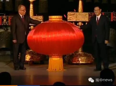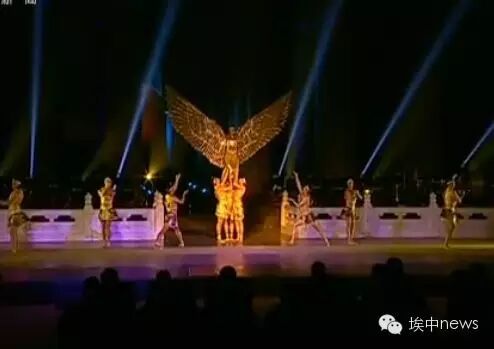 夜幕下,卢克索神庙广场灯火辉煌,流光溢彩,洋溢着喜庆友好的气氛。舞台上,中国红灯笼和埃及金字塔形象交相辉映,中埃文明在卢克索上空相遇。