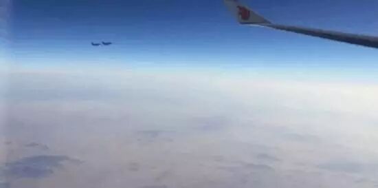 当习近平乘坐的专机进入埃及领空时,埃及空军8架战机升空护航。