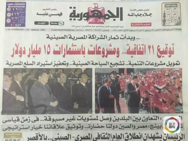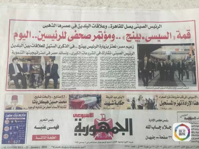 《共和国报》21日:习近平抵开罗,两国关系迎“黄金时代”。