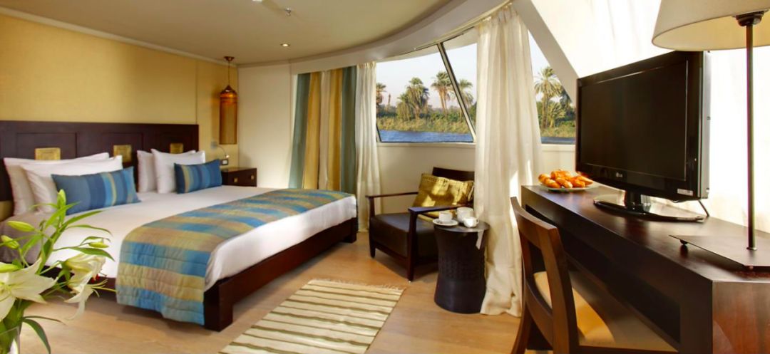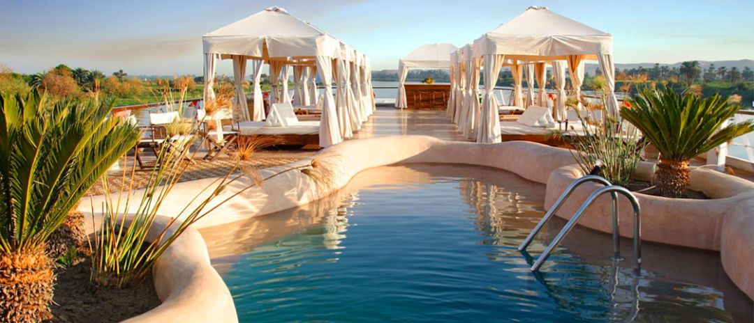 我可以在甲板上喝着香槟欣赏日出日落,在私人泳池中舒展身心,听着尼罗河水从身旁缓缓流过,一切都是如画般经典,看着飞鸟从头顶掠过仿佛千年时光从未变更过……