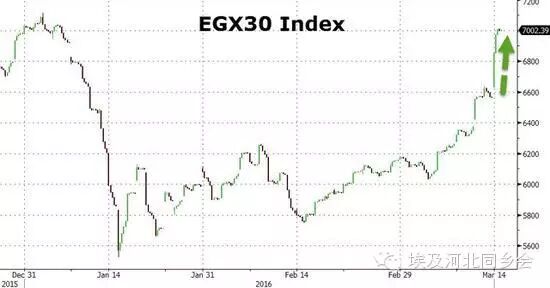 埃及股市EGX 30指数14日盘中急涨6.8%,创2013年7月来最大单日涨幅。2025年到期的埃及欧元债券已连续第3天上涨,收益率再降16基点,为7.79%,是近4个月来最低水准。