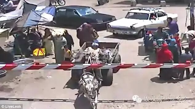 据英国《每日邮报》3月17日报道,埃及一名男子驾驶他的驴车在铁道栏杆外等待火车经过时,驴子突然穿过栏杆冲向火车,被直接碾压在火车底下,他的主人和驴车上的孩子经历这一惊魂一刻,险些丧命。