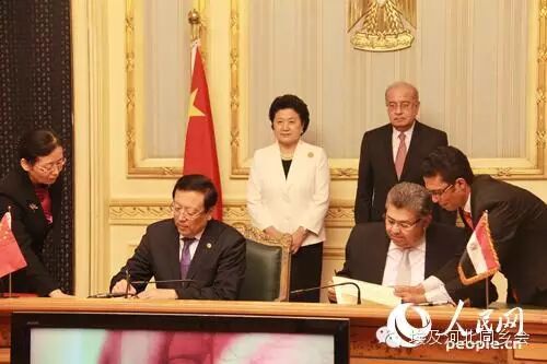 图为中国教育部副部长郝平同埃及高教科研部长希哈在签署有关合作谅解备忘录。 中国和埃及近日在开罗签署了教育科技领域五份合作协议,它们是:《中华人民共和国教育部与阿拉伯埃及共和国高等教育与科学研究部关于合作设立中埃交流专项奖学金项目谅解备忘录》、《中华人民共和国教育部与阿拉伯埃及共和国高等教育与科学研究部高等教育合作谅解备忘录》、《中国教科文组织全委会与埃及国家教科文组织全委会合作谅解备忘录》、《中华人民共和国科学技术部与阿拉伯埃及共和国高等教育与科学研究部关于科学园合作的谅解备忘录》和《中华人民共和国科学技术部与阿拉伯埃及共和国高等教育与科学研究部关于建立科技合作联合资助计划的谅解备忘录》。