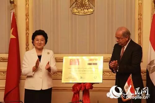 图为正在埃及访问的中国国务院副总理刘延东和埃及总理伊斯梅尔共同为“中埃可再生能源联合实验室”揭牌。 正在埃及访问的中国国务院副总理刘延东和埃及总理伊斯梅尔见签了上述协议,并为“中埃可再生能源联合实验室”揭牌。
