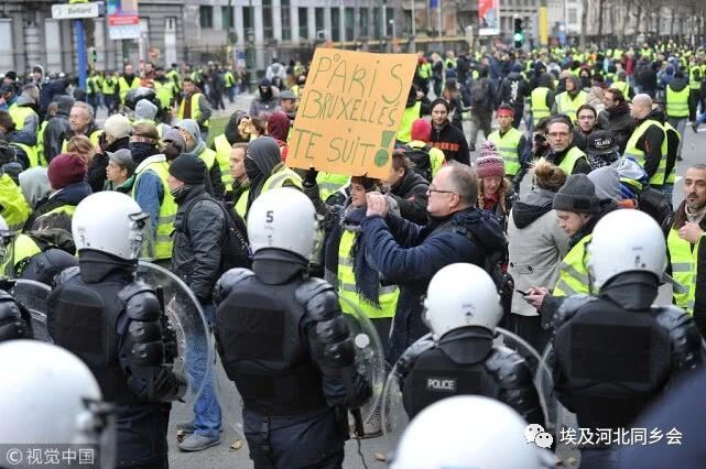 “黄背心”运动扩散至比利时荷兰 警方使用催泪瓦斯驱逐抗议者 @视觉中国