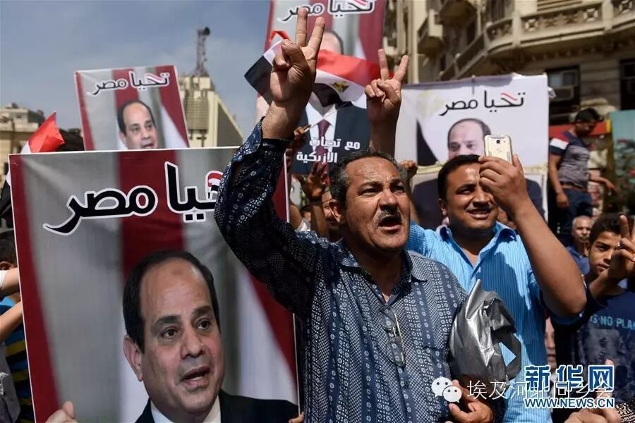 4月25日,在埃及首都开罗,埃及民众在“西奈半岛解放日”举行集会支持政府及总统塞西。当日是“西奈半岛解放日”,埃及开罗举行集会支持政府及总统塞西。大规模反政府示威活动由于军警控制并未出现。埃及政府在沙特阿拉伯国王萨勒曼访问期间宣布将蒂朗和塞纳菲尔两座岛屿“归还”沙特,这曾被普遍认为将在“西奈半岛解放日”导致大规模反政府示威活动。