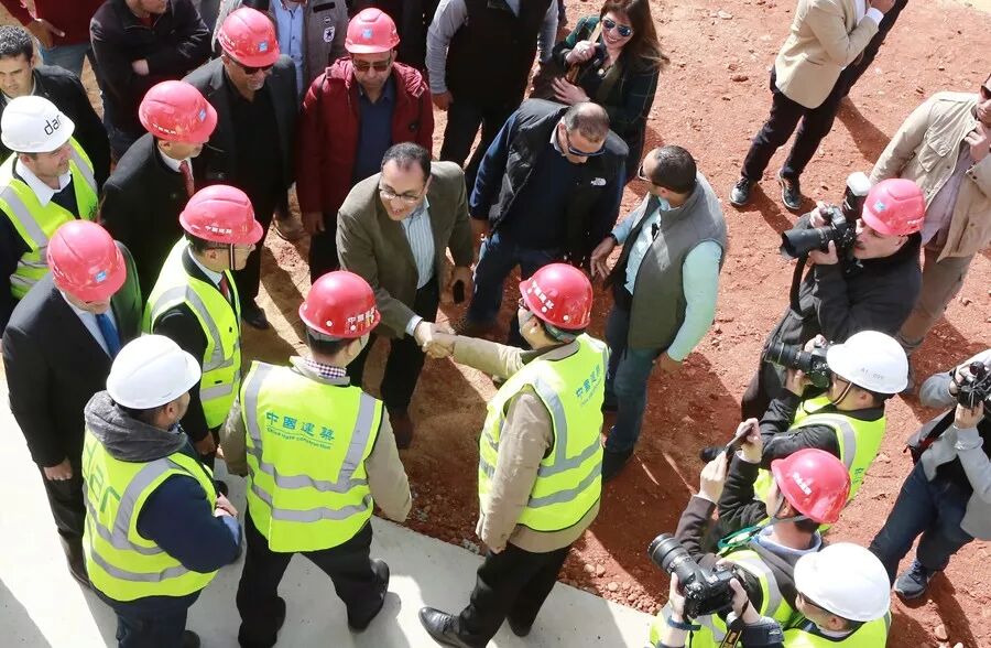 埃及当地时间2月25日上午,埃及总理穆斯塔法及埃及住房部长Assem EI Gazzar在中国驻埃及大使馆经参处公使衔参赞韩兵,中建八局副总经理、中建埃及分公司董事长王少峰,中建埃及公司总经理常伟才等陪同下,见证了由中国建筑承建的新首都中央商务区标志塔项目混凝土开盘浇筑。