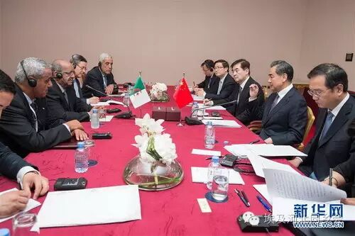 当地时间5月11日,外交部长王毅在多哈出席中阿合作论坛第七届部长级会议前会见阿尔及利亚外交与国际合作部非盟和阿盟事务部长梅萨赫勒。