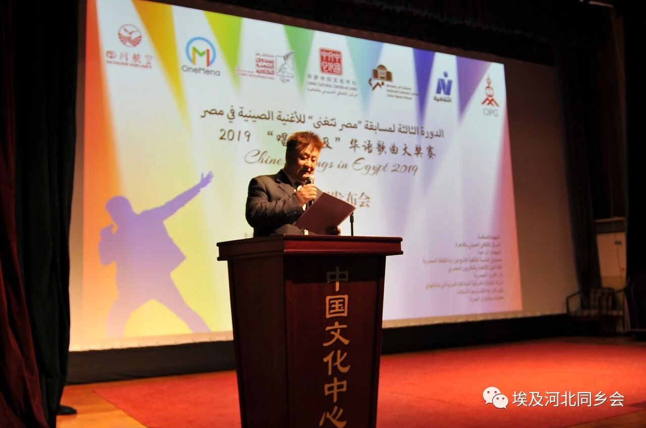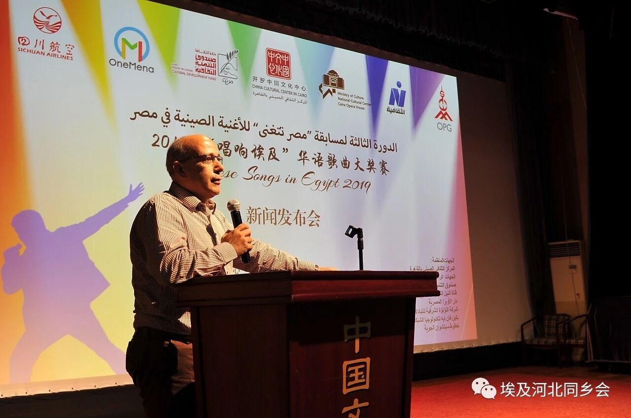 埃及文化部文化发展基金会主席法塔希·阿卜杜勒·瓦哈布出席活动并代表协办单位发表了热情洋溢的讲话。他指出,开罗中国文化中心举办的“唱响埃及”华语歌曲大奖赛为两国文化交流开辟了一个新平台,拉近了两个国家之间的距离,让埃及学生和普通民众近距离接触和体验中华文化。这是中埃两大文明碰撞产生的美丽的火花,它照亮了两国文明前进的道路,也使两国友谊更加深厚稳固。很荣幸能协办这一赛事,为促进两国人文交流、增进两国人民世代友好做出贡献。随后,比赛协办单位北京泛阿网络科技有限公司运营总监池婧男介绍了报名方式。