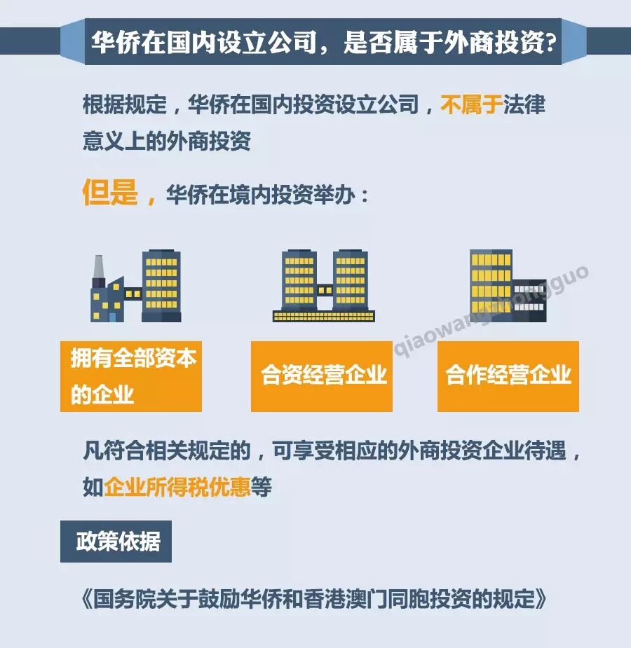 上月,中国侨网推出了“为侨资企业服务网上活动月”活动,与不少华侨朋友们交流了侨商投资的法律知识和政策信息。如果你也有兴趣回国投资兴业,不妨先了解一下相关政策: