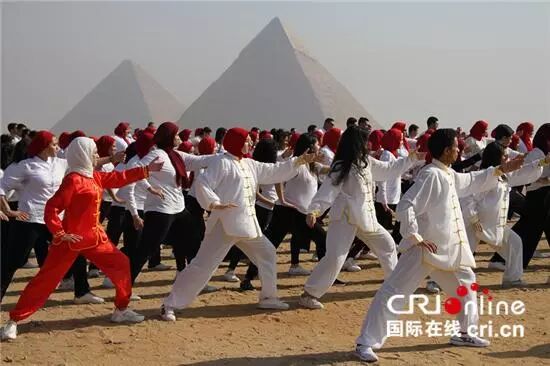 国际在线报道(记者 刘素云):12日上午,埃及开罗金字塔前上演了一场别开生面的中国文化活动。开罗大学孔子学院的师生们以金字塔为背景,以大漠为舞台,向人们展示了太极拳、相声、中国音乐等传统中国文化,赢得一阵阵热烈的掌声。太极表演是当天活动的最大亮点。古老的金字塔前,140名埃及学生伴随着悠扬的中国古乐,演绎出一曲中埃文化相互交融的独特乐章。据了解,今年是中国在海外开设孔子学院15周年,也是开罗大学孔子学院开办12周年纪念。为此,开罗大学孔子学院携手开罗大学中文系,共同举办“孔子学院日”中国文化系列活动。当天在金字塔前上演的是该系列活动中的第二场。开罗大学孔子学院埃方院长、中文系主任李哈布教授介绍说:“今天我们开罗大学孔子学院在金字塔举行‘孔子学院日’。孔子学院日包括很多活动,有太极拳,还有合唱、相声。埃及与中国这两个国家的文明很悠久,所以我们将中国悠久的文化与埃及历史悠久的金字塔结合在一起。”当天活动组织者、开罗大学孔子学院教师张开礼也表示,金字塔是开罗的地标,在这里举办中国文化活动,象征着两个古老文明的交流与对话,也有助于扩大开罗大学孔子学院的影响力,让更多的埃及人了解中国文化。这段表演是埃及学生自编自演的相声《绕口令》,作者和表演者是开罗大学中文系二年级的学生梦琪和李明。“我们开始的时候感到很害怕,但有很多人鼓励我们。”说起学习中文的经历,两位学生都表示“非常喜欢中国文化”、“喜欢中国人”。梦琪未来的理想是做一名中文导游。“虽然导游的工作很辛苦,但能同中国人打交道,我会很开心。”李明的理想则是希望能到中国从事相声和绕口令表演。当天,中国老师也献上才艺,身着汉服演奏传统乐器古筝。孔子学院合唱团的师生们用中文演唱中国歌曲《家国》,嘹亮歌声在金字塔前回荡。丰富多彩的文化展演,吸引了中外游客们或驻足观看,或拍照留念,或情不自禁跟随表演者舞起了太极。来自北京的游客李先生夫妇表示,在金字塔巧遇中国文化表演,让他们倍感惊喜。穆罕默德是金字塔前小市场的一个摊主,已经在这里摆摊40年。他说,在他的记忆中,这是金字塔第一次上演有音乐的文化表演。他感到特别高兴,因为这也是对埃及旅游的一种推介。