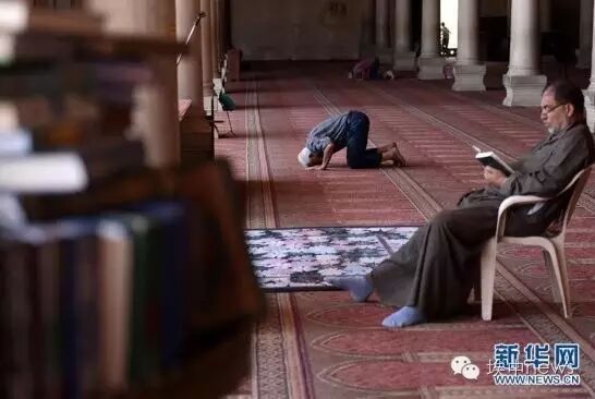 6月6日,在埃及首都开罗,穆斯林在清真寺内诵读《古兰经》。当日,埃及穆斯林迎来一年一度的斋月。 新华社记者赵丁喆摄