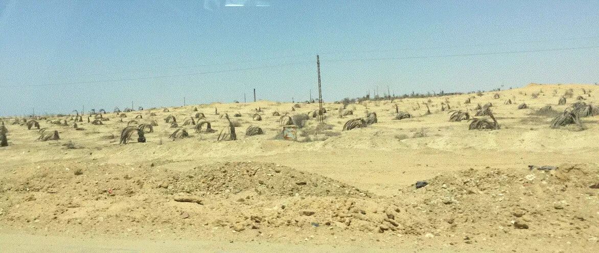 埃及人民治理沙漠的成功模式之一,就是在城市边缘的沙漠中建一处房子,在房子周围一点一点种草、植树,把生存空间不断向浩瀚沙漠中缓慢推进。眼前出现的荒芜和凋零景象,记录着人类和沙漠战斗的艰难历程。