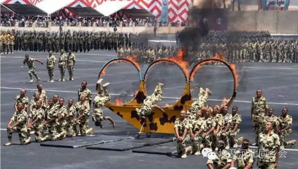 埃及军事学院毕业典礼 跳火圈显高超技能