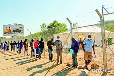 在纳米比亚首都温得和克,求职者排队等候进入招聘会现场。新华社发