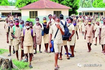 这是5月11日在贝宁经济首都科托努拍摄的校园中戴口罩的中学生。新华社发