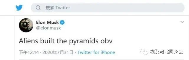 美国SpaceX公司创始人兼CEO马斯克此前在推特上发表的言论似乎是对某种阴谋论的支持,一些阴谋论者称外星人参与了这一庞大的建设工作。马斯克7月31日在推特上写道,“外星人建造了金字塔”,这条推文被转发超过84000次。