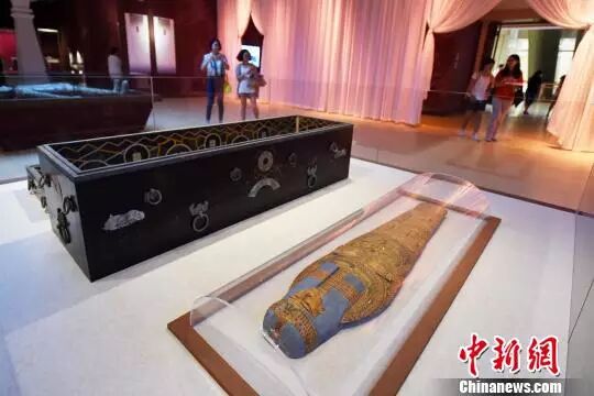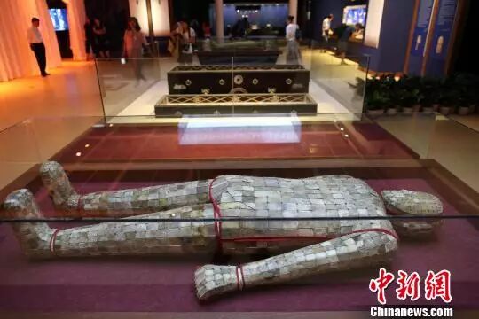 中新网南京8月9日电 (记者 朱晓颖)一边是有着3000多年历史的古埃及年轻女性木乃伊和人形盖板,一边是约有2100年历史的中国汉墓金缕玉衣和玉棺,展厅内光线黯淡,纱幔轻坠,充满神秘氛围。