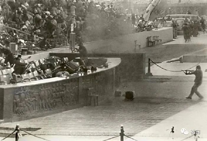 检阅台分为左、中、右三部分,台前均有一排不到一人高的矮墙。中台往前突出一些,为埃及国家、政府和执政党领导人、军队高级将领、宗教领袖和外国高级贵宾席;右台为各国驻开罗大使和外国专家代表席;左台为外国武官专席。各国武官按国家英文译名的字母次序排列,依次入座。中国的英文译名为China,第一个字母是“C”在英文中为第三个字母,所以,我们的座位排在阿根廷、巴西武官之后,捷克武官之前,在左台第一排靠近中台的地方。坐下不久,埃及联络官法里德中校走过来与我们商量,请我们坐到第二排第二、三座位上(第一座位最靠边是埃及联络官法里德的座位),他说第二排的座位比第一排的高一些,坐的高可以望得远。我们也就“客随主便”,坐到了第二排,我们让出的4个座位就由总统卫队的便衣警卫坐了。10点55分,我听见了开道警车的警笛声,萨达特总统的车队到达了。萨达特、穆巴拉克和阿布·加扎拉三人在检阅台前下车,检阅台对面广场上的大型乐队立即高奏欢迎曲并鸣礼炮21响,军人们都致举手礼,我们武官也都站起来举手致敬。这时,整个广场都沉浸在热烈、庄严和欢乐的气氛之中。11时,阅兵典礼开始。首先由伊斯兰教阿訇阿卜杜勒·萨姆达高声朗读《古兰经》选段。接着,埃及国防部长兼武装部队总司令阿布·加扎拉发表讲话,接下来萨达特总统向无名战士纪念碑敬献花圈。11时20分,阅兵正式开始。12时50分,埃及炮兵部队开始通过检阅台。12时55分,装备130毫米加农炮的炮兵团开始通过。这时,空中正在进行飞行表演。6架法国造“幻影”式喷气式战斗机尾部拖着五颜六色的烟带,忽上忽下,突然左右分开,继而又会合从检阅台顶上掠过,在空中出现许多彩色光圈。特技表演把人们的注意力几乎全部吸引过去了。喷气机发动机发出的轰鸣声把其他声音也都掩盖了。当我注视着炮车从我正前方通过的时候,突然发现最靠近检阅台的一辆10轮卡车慢慢停了一下,然后又往前开了几米才完全停下来。这辆卡车后面牵引一门130毫米火炮。卡车上面面对面坐着两排头戴钢盔,手持自动步枪和冲锋枪的战士,每排4人,驾驶室里坐着一名车长、一名司机,车长在司机的后面,靠近检阅台。卡车刚一停下,车长和车上的两名“战士”迅速从车上跳下,仍在卡车上的一名“战士”端起冲锋枪,瞄准萨达特,射出一枚子弹,萨达特应声倒下。坐在萨达特后面的他的私人秘书阿卜杜勒·哈菲兹急忙举起萨达特的座椅来抵挡飞来的子弹保护萨达特,但为时已晚,他自己也受伤倒下。事后得知,当时车长名叫伊斯兰布利,为炮兵连连长,中尉军衔,为4人袭击小组的头目。卡车经过检阅台时,他拔出手枪对准司机,命令立即停车,司机吓得目瞪口呆,不敢出声也不敢反抗,急忙踩刹车,卡车滑行了几米才完全停住。伊斯兰布利跳下卡车,向检阅台扔了一枚手榴弹。当时坐在萨达特总统右面的为副总统穆巴拉克,依次为阿曼国务大臣泰穆尔亲王和埃及总统助理马雷、伊斯兰教阿訇萨姆达和武装部队参谋长哈菲兹中将。手榴弹落在阿布·加扎拉的旁边,幸好没有爆炸;另一枚手榴弹打到哈菲兹中将身上,也没有爆炸,但砸伤了哈菲兹。如果这两枚手榴弹有一枚爆炸,则埃及政党主要领导人必将遭到重大伤亡。我当时亲眼看到第三枚手榴弹落在萨达特左前方的5米处爆炸,响声并不太大,因为当时被其他声音压住了,特别是天空中喷气机的轰鸣声和地面重型机动车的马达声。手榴弹冒起一团烟雾,弹片四飞。扔手榴弹和冲锋枪射击几乎是同时发生的,坐在中台观礼的埃及党政军要人有的被击中,有的赶紧蹲下或趴下,惊叫声乱成一片,我们左台的埃及联络官大喊让所有人都趴下。车长伊斯兰布利中尉扔出手榴弹后,立即端着冲锋枪一面射击,一面朝着中台中央跑去,边跑口中还大声叫嚷。车上的另外三人一跳下车首先把头上的钢盔摔在地上,端着上了短刺刀的自动步枪,分左、中、右三路向观礼台中台包抄,他们的袭击目标对准以萨达特为首的埃及党政军要人。其中一名枪手又扔出一枚手榴弹,在中台前爆炸,弹片飞向检阅台上方。左路的一名留着短胡子的大个子枪手跑得最快,他端起自动步枪向中台射击。坐在萨达特总统后面的总统贴身警卫拔出手枪以靠椅为依托进行还击。枪手只好调转枪口对准总统警卫,一梭子弹就射击到右台几排的外国大使和军事家席,造成一些伤亡。事后统计,中台损失最大,其次是右台,损失最小的是我们左台武官专席。这些枪手深知,检阅台四周虽然布满岗哨,有的背着自动步枪,有的腰里别着手枪;但是,除了总统贴身警卫的手枪中有子弹外,其他任何武装人员只有枪,没有子弹。枪手端着冲锋枪和自动步枪如入无人之境,谁都不敢接近他们。整个检阅台都被这伙枪手搞得天翻地覆,喊叫声响成一片,许多人都想方设法卧倒,免被流弹击中。左路的短胡子大个子枪手登上台阶,从萨达特总统的左侧后方向萨达特射击,中路的伊斯兰布利利用冲锋枪继续射击,并掩护大个子,还有一名戴压发帽的瘦个子弓着腰,端着自动步枪从右路快速前进。伊斯兰布利一直进到矮墙用冲锋枪射击,弹尽后退下来。跟在他后面的一名枪手和大个子枪手则冲到矮墙前,双双高举自动步枪向萨达特倒下的位置射击,直至弹尽。这些枪手(共4名)弹尽逃跑的时候,总统卫队和宪兵把他们包围,总统卫兵用手枪击倒