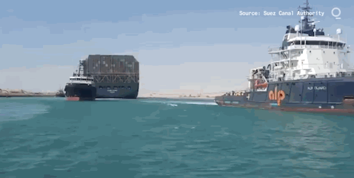 的努力下,从23日开始堵塞苏伊士运河航道的“长赐”号
