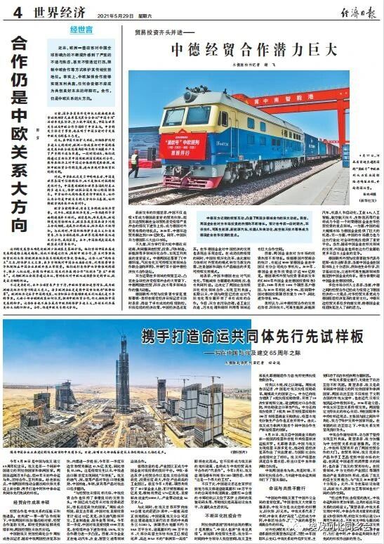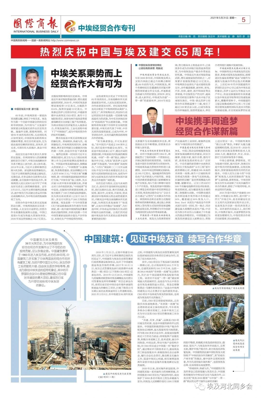 中国商务部官刊《国际商报》报道中国建筑为中埃友好、合作发展做出的贡献。