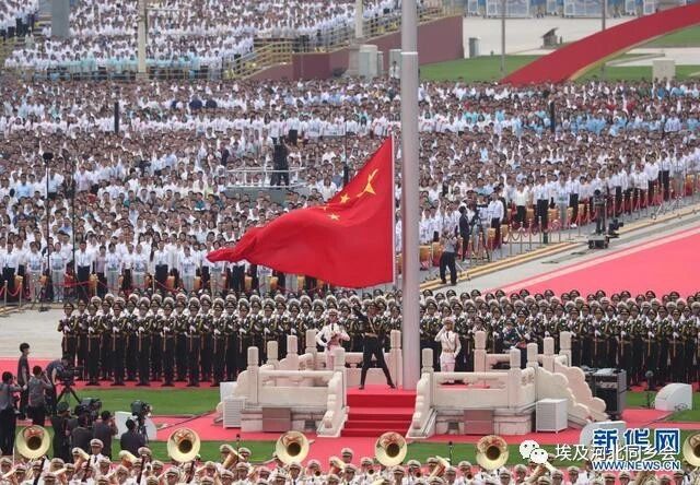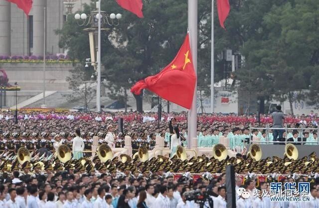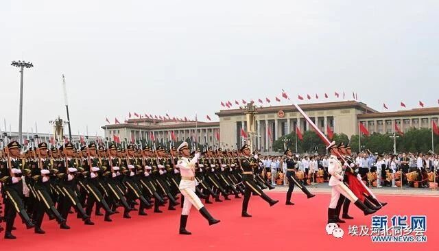 7月1日上午,庆祝中国共产党成立100周年大会在北京天安门广场隆重举行。这是升国旗仪式。