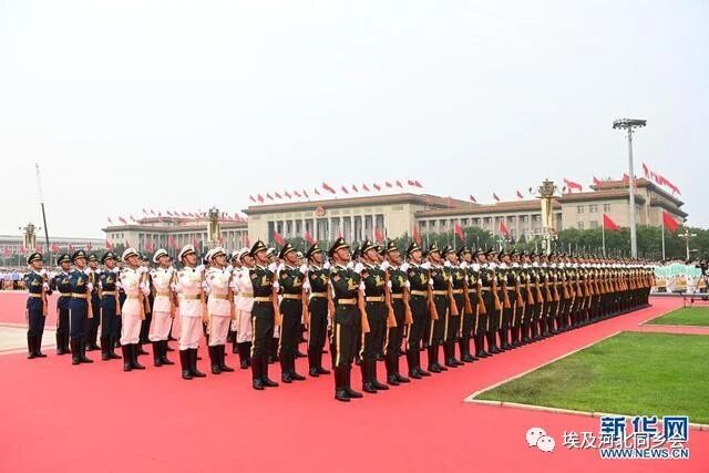 7月1日上午,庆祝中国共产党成立100周年大会在北京天安门广场隆重举行。这是国旗护卫队准备升旗。