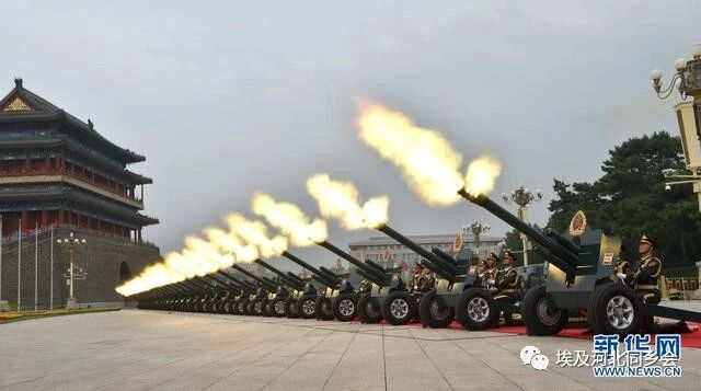 7月1日上午,庆祝中国共产党成立100周年大会在北京天安门广场隆重举行。这是礼炮鸣响。