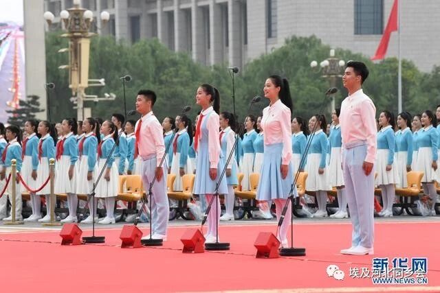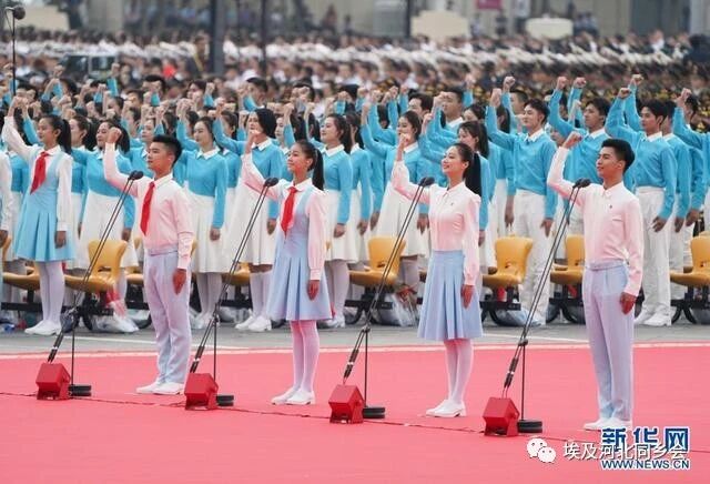 7月1日上午,庆祝中国共产党成立100周年大会在北京天安门广场隆重举行。这是共青团员和少先队员代表集体致献词。