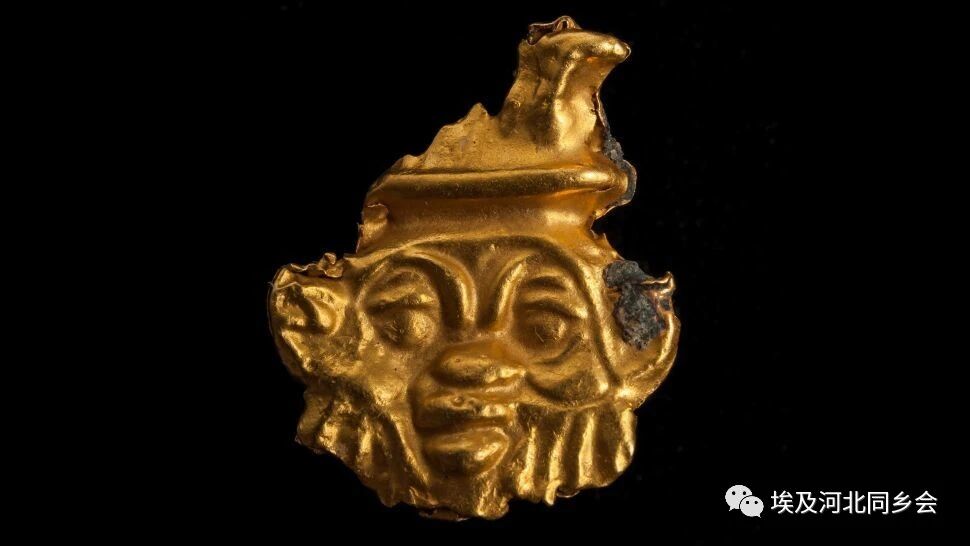 墓地里的黄金护身符,描绘了一个与分娩和生育有关的埃及神贝斯