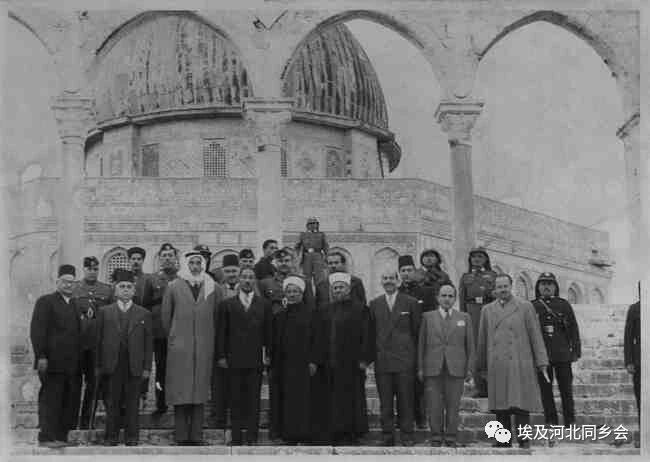 (1955 年 12 月,安瓦尔·萨达特 (Anwar Sadat) 与约旦东道主在圆顶清真寺 (Dome of the Rock) 合影。马丁·克莱默 (Martin Kramer))