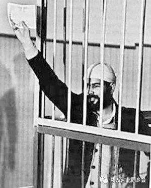 (艾曼·扎瓦希里 (Ayman al-Zawahiri) 于 1982 年在埃及法庭受审期间被关押在监狱中,他是据称暗杀埃及总统安瓦尔·萨达特的主谋之一。)