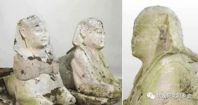 美国有线电视新闻网(CNN)13 日报道称,据英国曼德拍卖行提供的资料显示,这对约 1 米高的石雕刻的是埃及狮身人面像。因保管不善,石雕外表风化严重,布满青苔和泥土痕迹。其中一尊雕像的头部早已掉落,后通过水泥与 " 狮身 " 进行重新黏合。