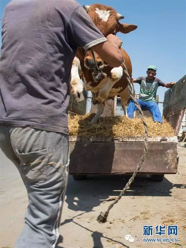 9月11日,在埃及首都开罗,两名商贩在一处路边牛羊市场将牛卸下卡车。当日是宰牲节前的最后一天,也是埃及宰牲节假期的第一天,开罗街头的许多店铺已经关门,道路空旷,但仍有一些民众抓紧最后的时间采购牛羊和礼品,迎接宰牲节的到来。新华社记者孟涛摄