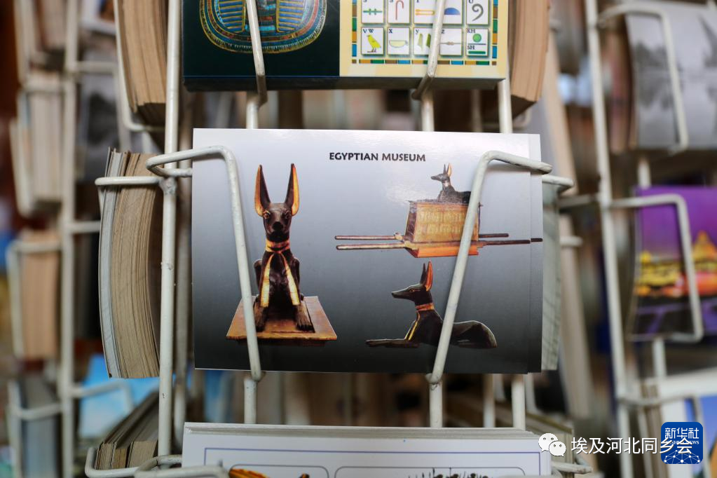 这是5月14日在位于埃及开罗的埃及博物馆纪念品店拍摄的以图坦卡蒙墓中出土的“阿努比斯”雕像为主题的明信片。 埃及博物馆位于埃及首都开罗市中心,于1902年正式对外开放,珍藏着众多自古埃及法老时代至公元6世纪的历史文物。“阿努比斯” 是古埃及神话中一位与木乃伊制作及死后生活有关的神,其形象通常被描绘成一只胡狼,或是一位有着胡狼头的男性,出现在众多法老时代的文物中。埃及博物馆中形式多样的“阿努比斯”为主题的文创产品,受到人们喜爱。