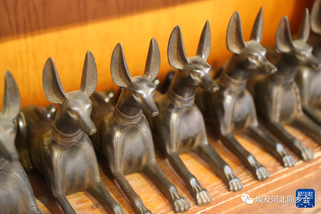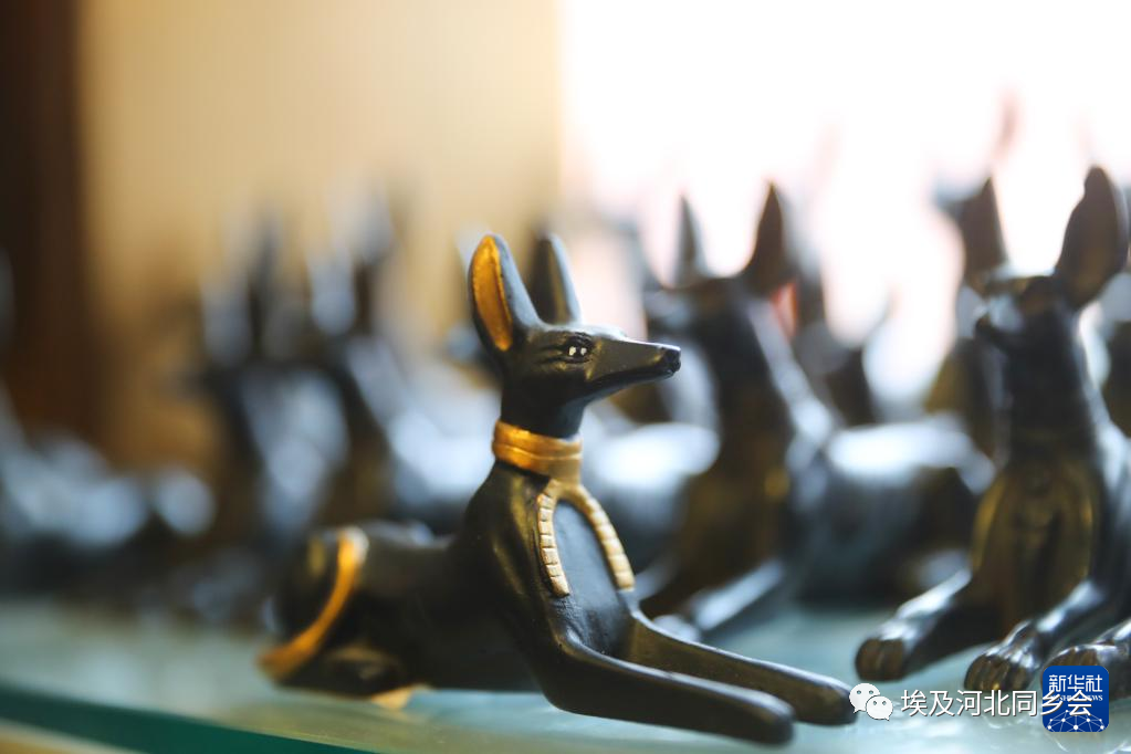 这是5月14日在位于埃及开罗的埃及博物馆纪念品店拍摄的图坦卡蒙墓中出土的“阿努比斯”文创产品。 埃及博物馆位于埃及首都开罗市中心,于1902年正式对外开放,珍藏着众多自古埃及法老时代至公元6世纪的历史文物。“阿努比斯” 是古埃及神话中一位与木乃伊制作及死后生活有关的神,其形象通常被描绘成一只胡狼,或是一位有着胡狼头的男性,出现在众多法老时代的文物中。埃及博物馆中形式多样的“阿努比斯”为主题的文创产品,受到人们喜爱。