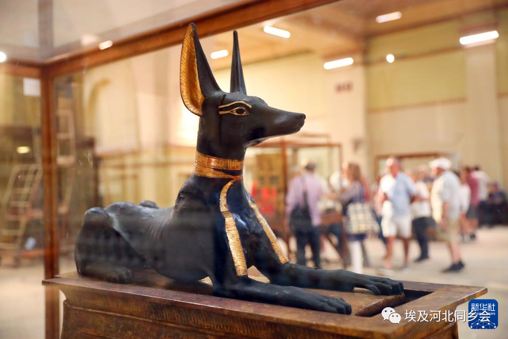 这是5月14日在位于埃及开罗的埃及博物馆拍摄的法老图坦卡蒙墓中出土的“阿努比斯”雕像。 埃及博物馆位于埃及首都开罗市中心,于1902年正式对外开放,珍藏着众多自古埃及法老时代至公元6世纪的历史文物。“阿努比斯” 是古埃及神话中一位与木乃伊制作及死后生活有关的神,其形象通常被描绘成一只胡狼,或是一位有着胡狼头的男性,出现在众多法老时代的文物中。埃及博物馆中形式多样的“阿努比斯”为主题的文创产品,受到人们喜爱。