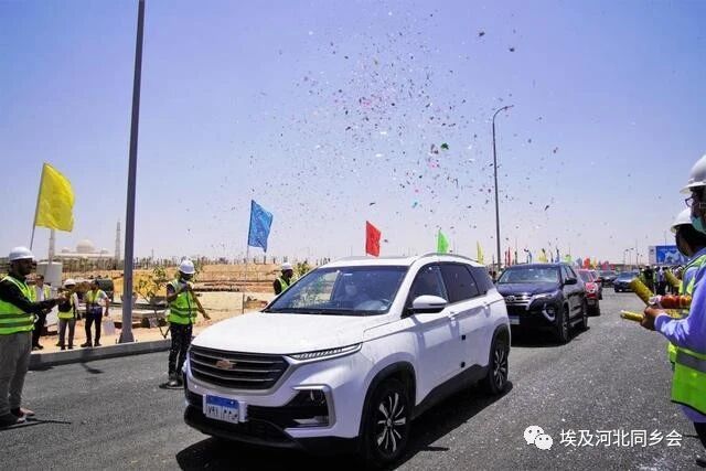 中埃嘉宾现场共同为道路通车剪彩,一辆辆汽车从南大门鱼贯出发、平稳驶入CBD项目。期间,常伟才、艾哈迈德·班纳为中埃劳务员工代表发放慰问品。活动现场还举行了“建证幸福”图片展。