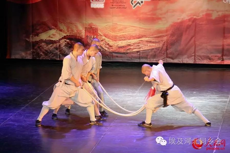 少林寺武僧团带来了八段锦、少林禅功、集体拳、二指禅、醉拳等节目。少林硬气功、少林十八般兵器、五枪刺身更是让埃及观众叹为观止,他们纷纷拿出手机录像,多次爆发出热烈的掌声和喝彩。到了互动环节,观众不论男女老少,争先恐后地上台体验,和少林师父学习功夫,一招一式极为认真。