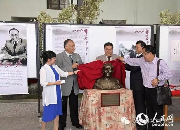在“郭沫若生平展”现场,徐南山和苏伊士运河大学孔子学院埃方院长、语言学院院长等人一道为郭沫若铜像揭幕。现场的埃及学生都对这位中国作家的一生感到好奇,纷纷驻足观展,并和铜像合影留念。苏伊士运河大学语言学院院长哈桑·拉戈布告诉同学们,郭沫若曾经到访埃及参加亚非团结大会,并和时任埃及总统纳赛尔结下了深厚友谊,现场爆发出热烈的掌声。