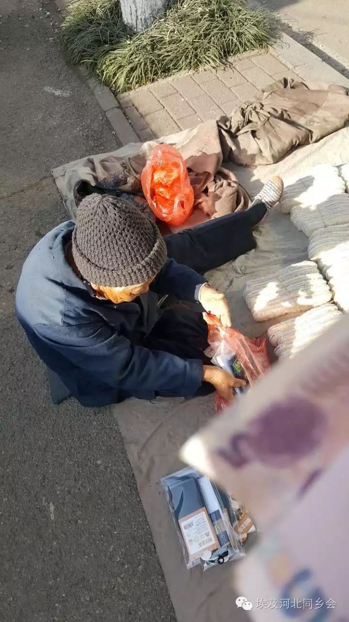 唐山,初冬的周末。虽然没有雾霾阳光还算明媚,但依然寒风瑟瑟,大街上行人稀少。此时,路边一个老奶奶引起了我的注意。