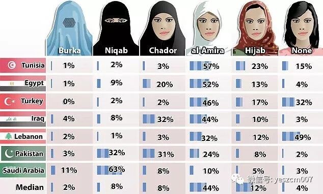 这是英国《每日邮报》调查到的伊斯兰女性态度,头巾(al-Amira或者Hijab)更受喜欢