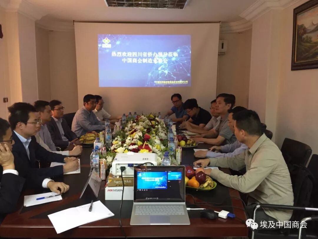2018年4月20日,埃及中国商会卞士远会长、制造业分会企业代表与来访的四川省人民政府外事侨务(港澳)办公室党组成员、纪检组长郝凯临一行在新希望公司就涉外安全等事项进行座谈。