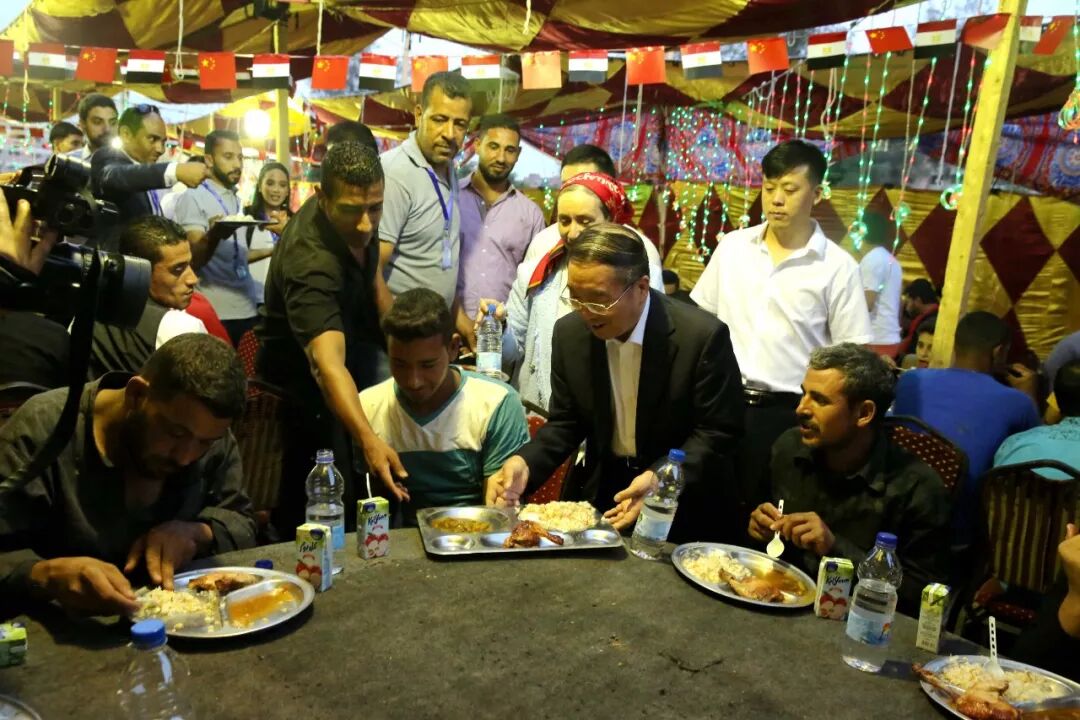 宋大使高度赞赏中资企业和旅埃华人的善举。他指出,中埃全面战略伙伴关系体现在方方面面。中资企业在促进中埃经贸合作的同时,不忘回馈当地社会,尊重当地习俗,已连续四年积极举办斋月慈善活动,向当地民众赠送斋月礼盒,搭建斋棚提供免费斋饭,体现了社会责任担当,增进了与埃及民众的了解和友谊,树立了在埃华人的良好形象。希望大家继续发扬中华民族急公好义、乐善好施的传统美德,以实际行动为两国人民的友谊传递更多正能量。参加活动的中资企业代表和旅埃华人表示,将继续在使馆和中国商会指导下,积极履行社会责任,为深化中埃友好作出应有贡献。