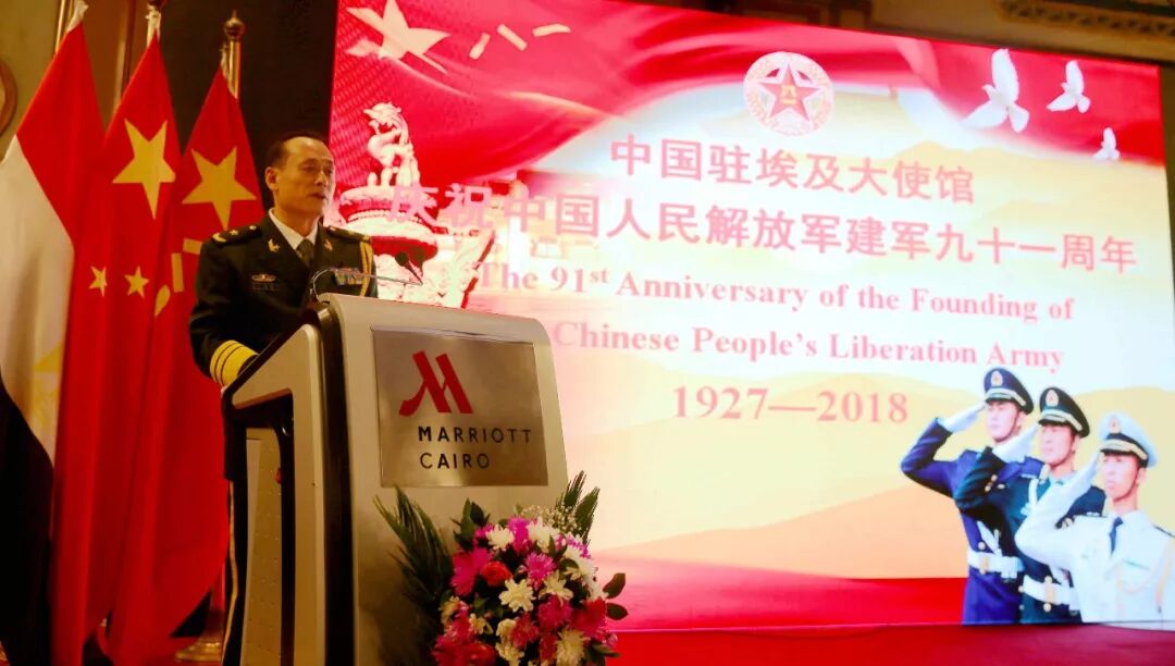 7月26日,中国驻埃及使馆在开罗万豪酒店举行建军节招待会,隆重庆祝中国人民解放军建军91周年。