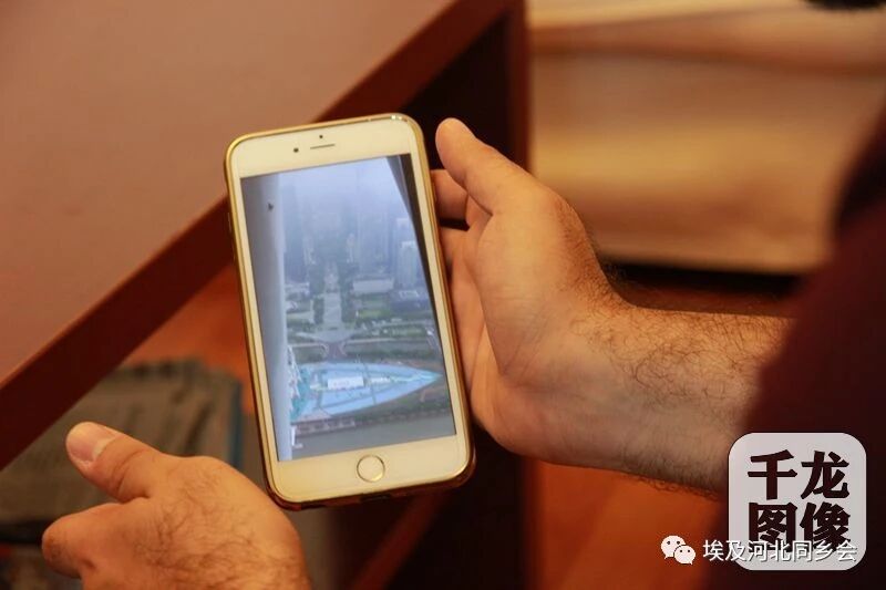 埃及《共和国报》记者阿哈姆德•萨米尔展示他在中国交流期间所拍摄的照片、视频等。千龙网发