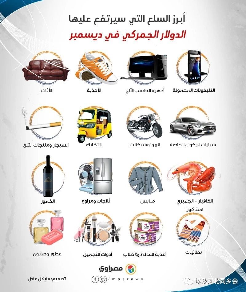 埃及财政部昨天宣布决定提高非必需品和娱乐产品的美元结算价格,与埃及中央银行的官方外汇牌价挂钩,有效期知道12月31日,届时将酌情公布2019年1月的外汇结算价格表。贸易商和进口商预计,财政部的决定预计将使市场上的商品价格上涨10%至15%。