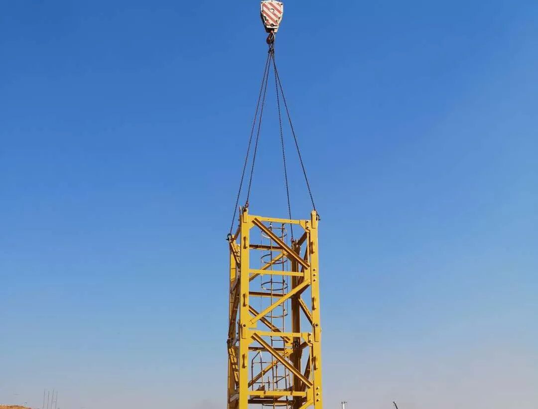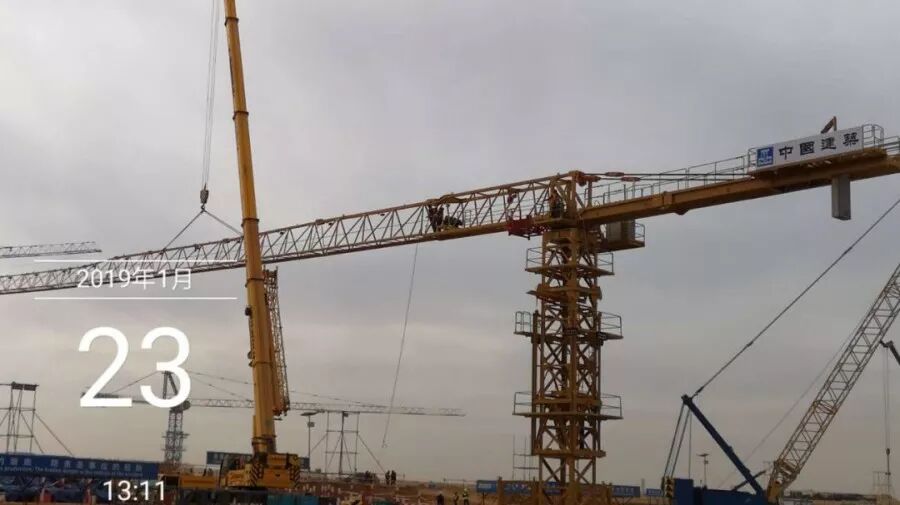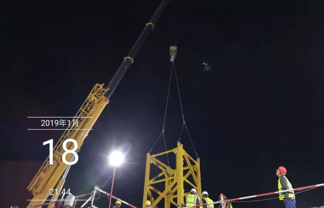 随后进行塔吊基础节安装,也是塔吊最核心的部分之一,历时3天完成了吊装。