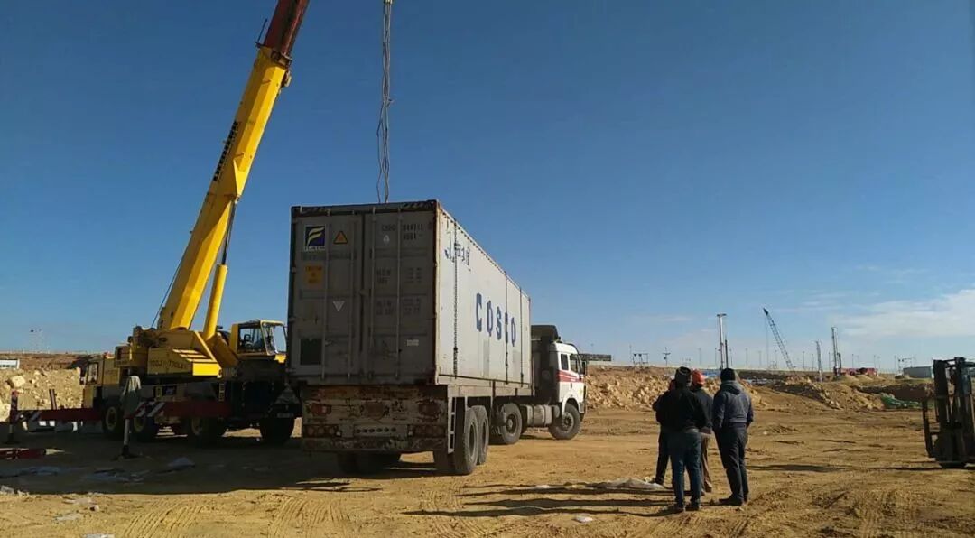 为了使配重块强度尽快达到规范要求,项目部采取加热及保温措施,提高养护温度,加快混凝土强度的提升,并经回弹检测,持续跟踪混凝土配重块的强度。为了节省路上来回吃饭的时间,项目管理员冒着沙漠外的风沙就餐,一顿饭几口解决问题。工人与管理人员紧密配合,安装埋件七个步骤用时1.5小时。埋件的完成也为后续安装工作顺利进行奠定了坚实的基础。
