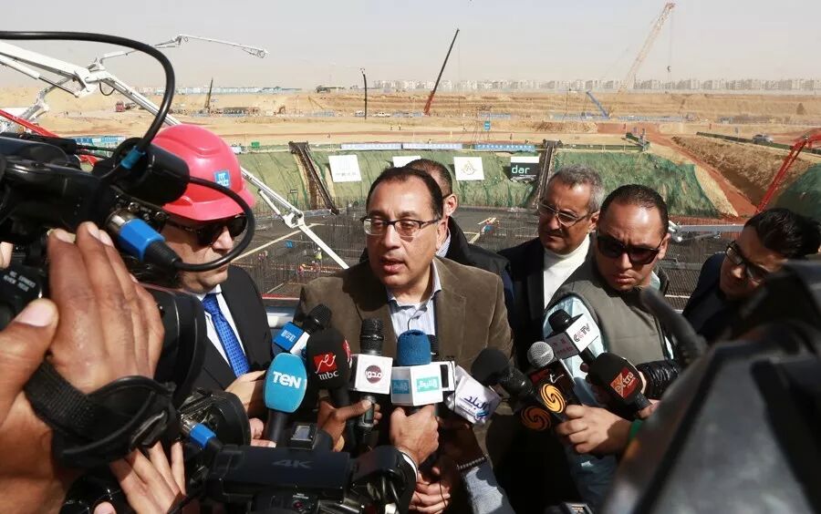 埃及当地时间2月25日上午,埃及总理穆斯塔法及埃及住房部长Assem EI Gazzar在中国驻埃及大使馆经参处公使衔参赞韩兵,中建八局副总经理、中建埃及分公司董事长王少峰,中建埃及公司总经理常伟才等陪同下,见证了由中国建筑承建的新首都中央商务区标志塔项目混凝土开盘浇筑。